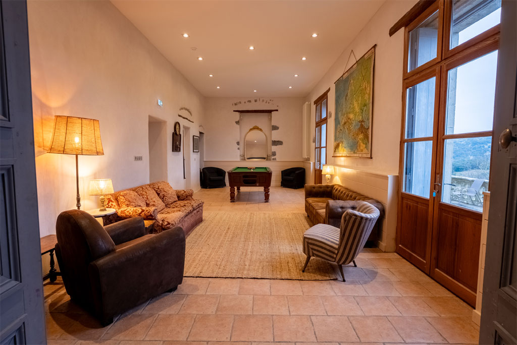 - un grand salon avec billard, jeu de fléchettes et autres jeux de société