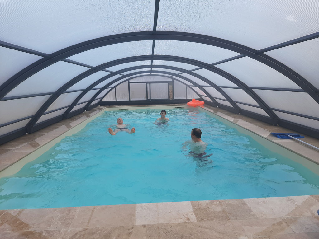 Vous pourrez vous détendre autour de la piscine chauffée à 29°c et couverte.