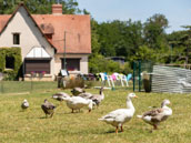 Côté sud, vue sur le parc arboré, et sur l'étang avec parc animalier qui fera le bonheur des petits et des grands, par la diversité des animaux (poneys, moutons nains, chèvres naines, canards, poules naines, oies, pigeons, etc.) et leur proximité. Ils sont habitués au contact humain. Possibilité d'utiliser la barque pour faire le tour de l'étang. Pèche autorisée.