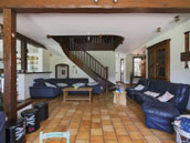 La maison comporte de grandes baies vitrées donnant sur les espaces verts et les étangs. La véranda de 50 m² est une grande salle de jeux avec billard, table ping-pong, chaîne hi-fi, et coin cuisine (gaz, évier, plan de travail).