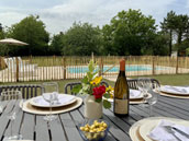 Piscine privative de 8x4 m (ouverte entre le 1er avril et le 30 septembre), chauffée à partir du 1er mai, si les conditions météo le permettent (pas de pompe à chaleur si il fait moins de 20 degrés la journée). La température de la pompe à chaleur de la piscine ne pourra pas dépasser 25 degrés - Terrasse - Barbecue - Terrain de pétanque - Table de ping-pong - Fléchettes - Balançoires - Salon de jardin - Chaises longues - Parasols - Jeux pour enfants