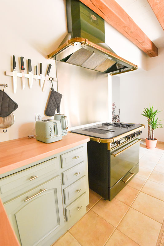 - 1 cuisine de 20m² avec piano Godin ouverte sur 1 salle à manger de 30 m²
