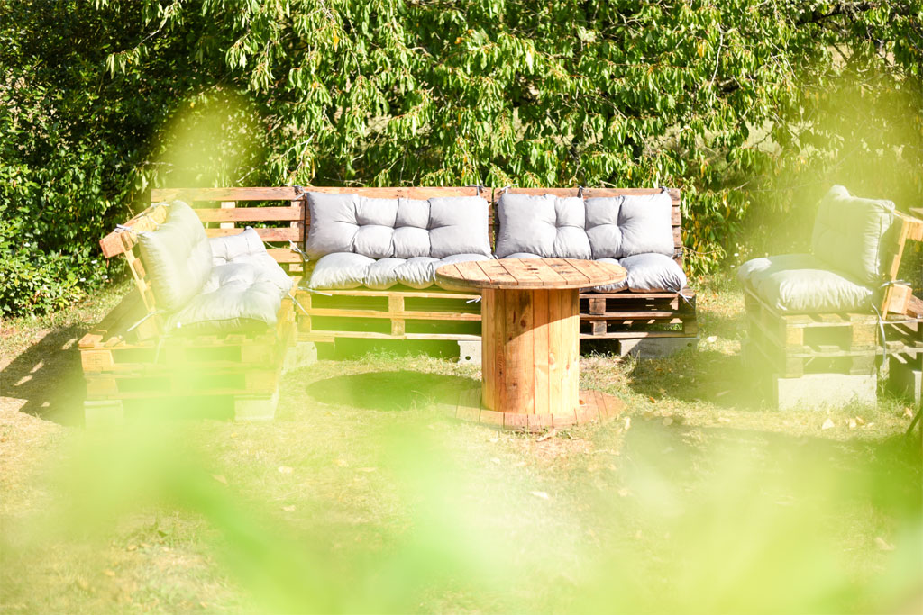 Terrasse (x2) - Barbecue - Salon de jardin - Terrain de pétanque - Jeu de fléchettes - Set de badminton