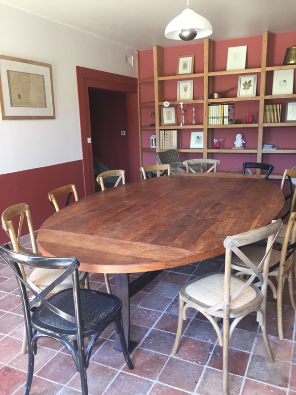 Ces dépendances, immergées en pleine nature ont été rénovées en location de charme pour vos séminaires, événementiels, ou séjours familiaux, par un architecte d'intérieur. L'essentiel de l'immobilier intérieur et extérieur a été conçu avec le bois de la forêt du château (tables, cuisine, meubles de salles de bain et bibliothèque).