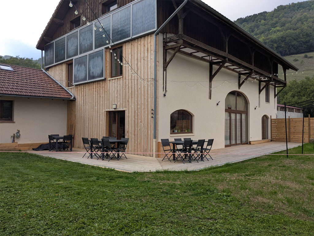 - Une grande terrasse Sud et Est avec 3 tables 24 places