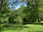 Terrain en bord de rivière : inclut une piscine estivale et des terrains de pétanque pour des moments de détente en plein air.