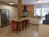 Ce grand gîte de 440 m² se compose d'une grande pièce de vie (90 m²) avec cuisine, de 9 chambres, de 8 salles d'eau, 9 WC, de plusieurs salons (dont 1 salle de pratique de Yoga) et salle de jeux.