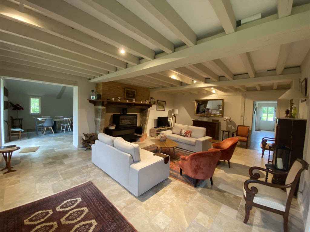 - Salon de 40 m² avec une cheminée ancienne, équipée d'un poêle à bois