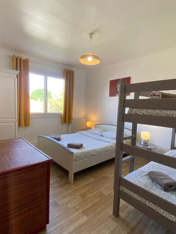 Chambre 5 : un lit double 2 adultes, un lit superposé (2x90)
