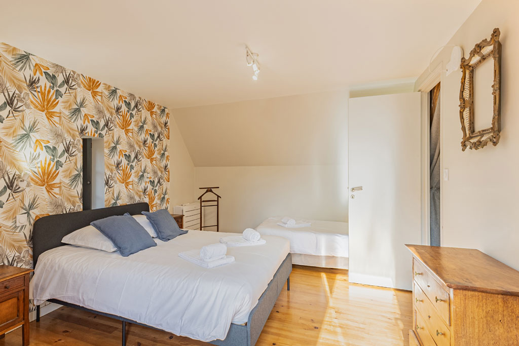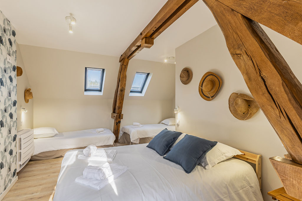 - 1 suite disposant d'une chambre avec un lit de 160 cm et 2 lits de 90 + une chambre avec deux lits de 90 + une salle d’eau (douche) avec WC.