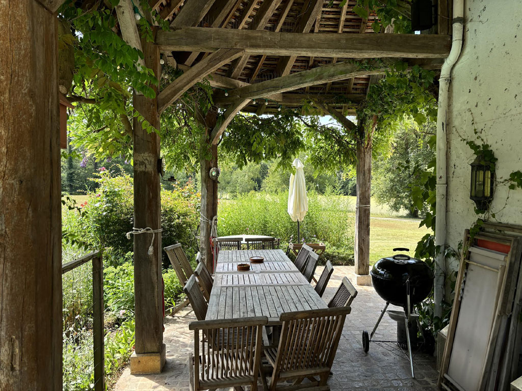 Enfin la grande terrasse qui entoure la maison, est une salle à manger d'été avec une grande table de 14 couverts.