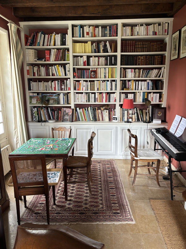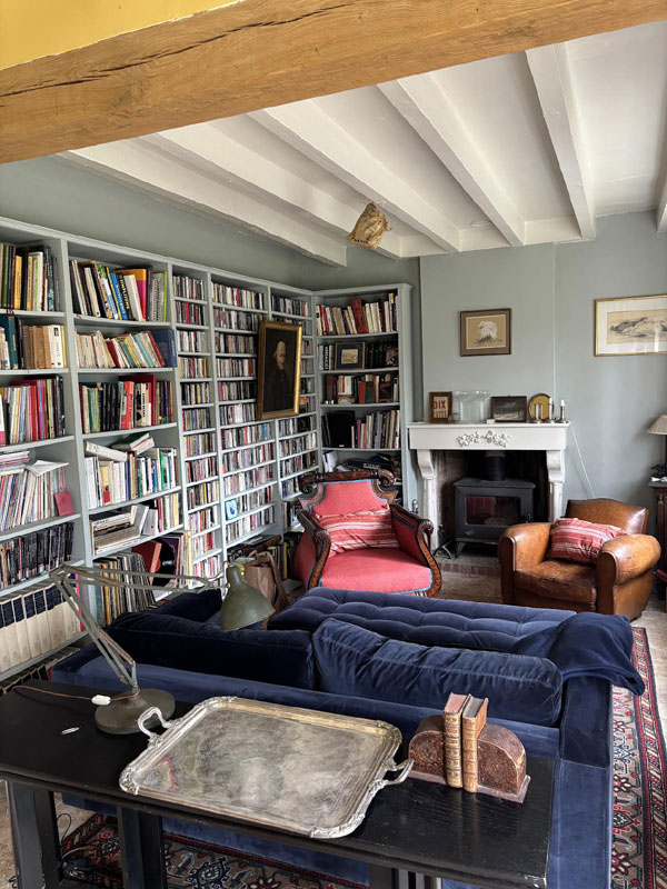 Dans la petite maison, un salon-bibliothèque dispose de 8 places assises.