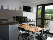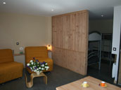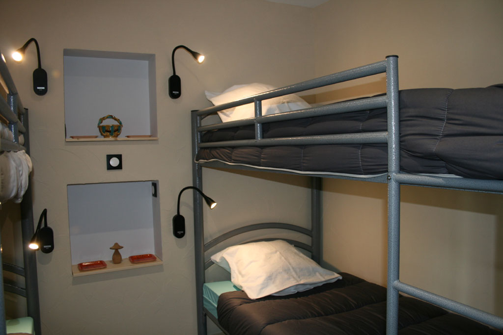 Chaque studio comprend une pièce à vivre avec coin salon (2 lits BZ de 90) et kitchenette, un espace couchage avec 2 lits superposés (4 couchages de 90) et une salle d'eau accessible PMR.
