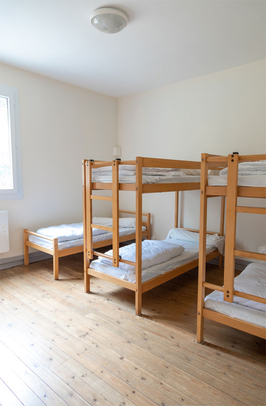 10 chambrées de 2, 3, 4, 5 places soit 40 couchages + 3 douches + 3 WC