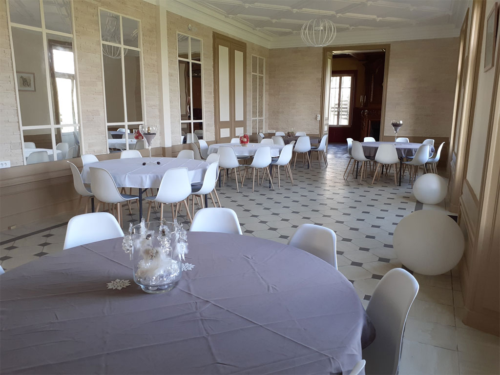 Le rez-de-chaussée du château comprend diverses salles disponibles en supplément : salle enfants, salons en enfilade pour 160 m² et 120 places assises et cuisine