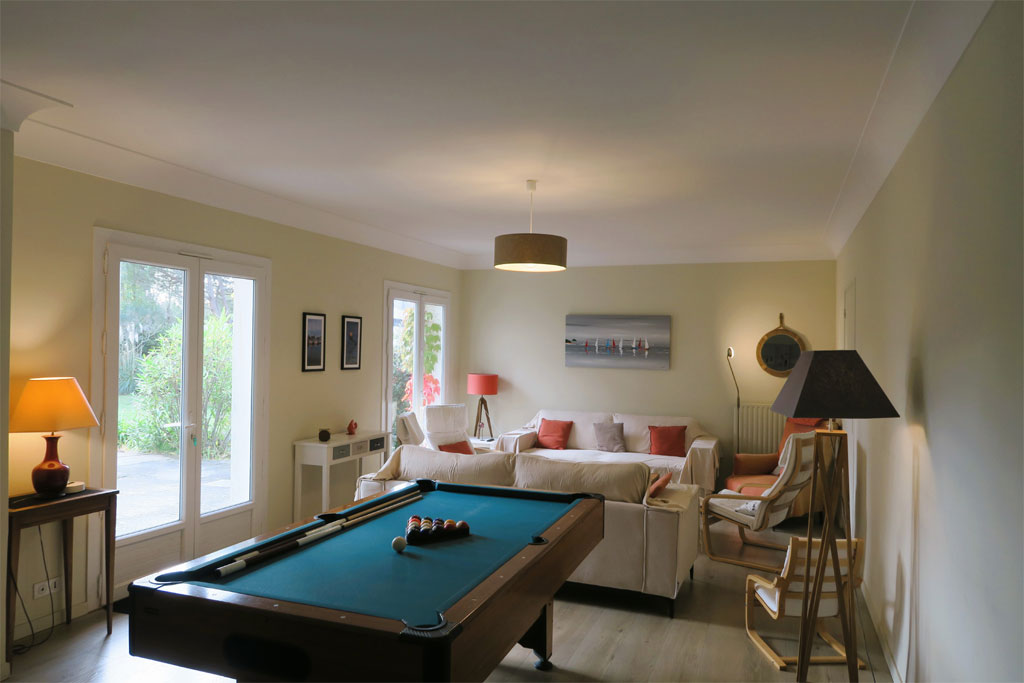« Ker les Mats », notre maison de famille de 300 m², 7 chambres et son jardin arboré de 1800 m² avec terrasse Sud/Ouest de 40m², est située au cœur de Piriac-sur-mer à 200 m du marché, des commerces, des restaurants et à 400 m de la plage pour un séjour tout à pied. Ker les Mats offre de vastes espaces de vie avec un salon séjour de 70 m² et cuisine attenante de 25 m² très bien équipée. Tennis de table, babyfoot, billard, terrain de boule et jeux de société sont à votre disposition.