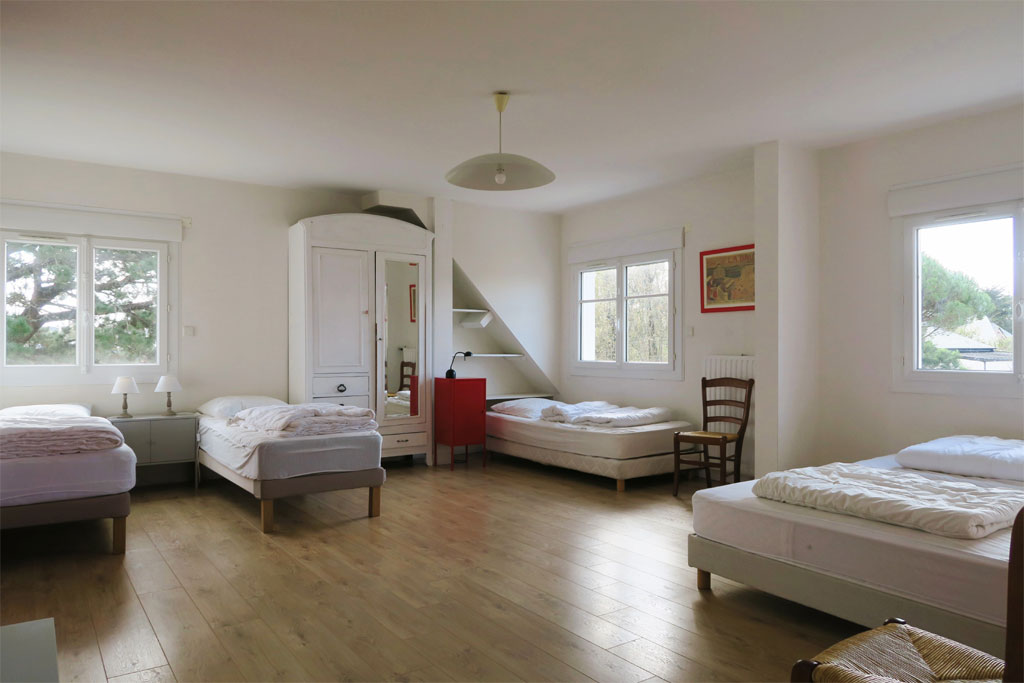 - Dortoir 5 lits simples (2x80 jumelables et 3x90) avec salle de bain