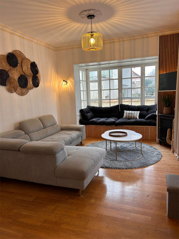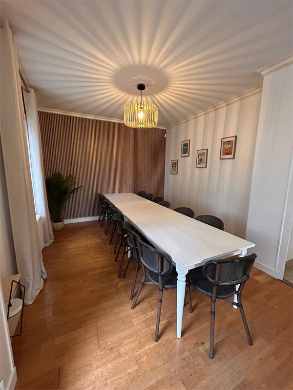 - Un séjour salon avec espace TV et une grande table en longueur 15 personnes