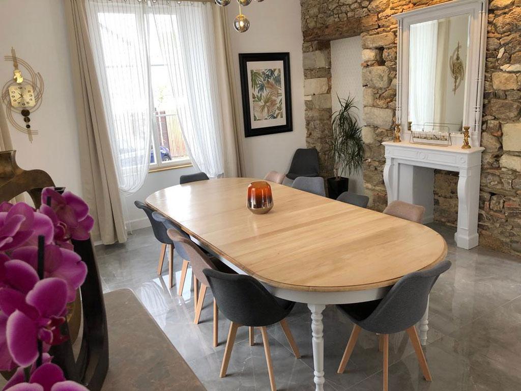 Cette grande demeure de caractère de 260 m² a fait l’objet d’une rénovation complète, pensée pour préserver son authenticité tout en offrant des équipements modernes et fonctionnels. Les volumes généreux et la luminosité des espaces créent une atmosphère chaleureuse, idéale pour se retrouver en famille ou entre amis.