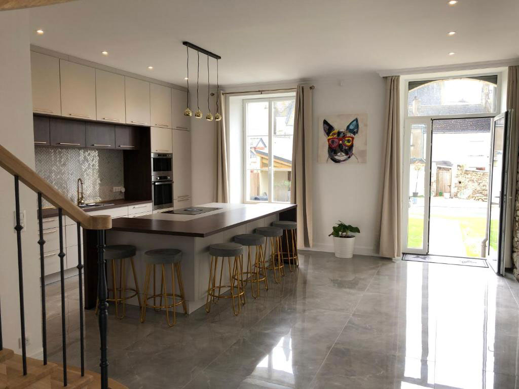 - Une cuisine équipée ouverte sur la salle à manger