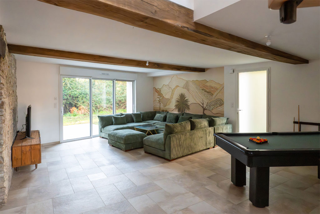 Ce gîte est donc particulièrement adapté pour des réunions familiales, des retrouvailles entre amis, des ou des vacances en groupe : le mélange confort, indépendance des chambres, détente et loisirs en intérieur le rend très fonctionnel en toute saison.
