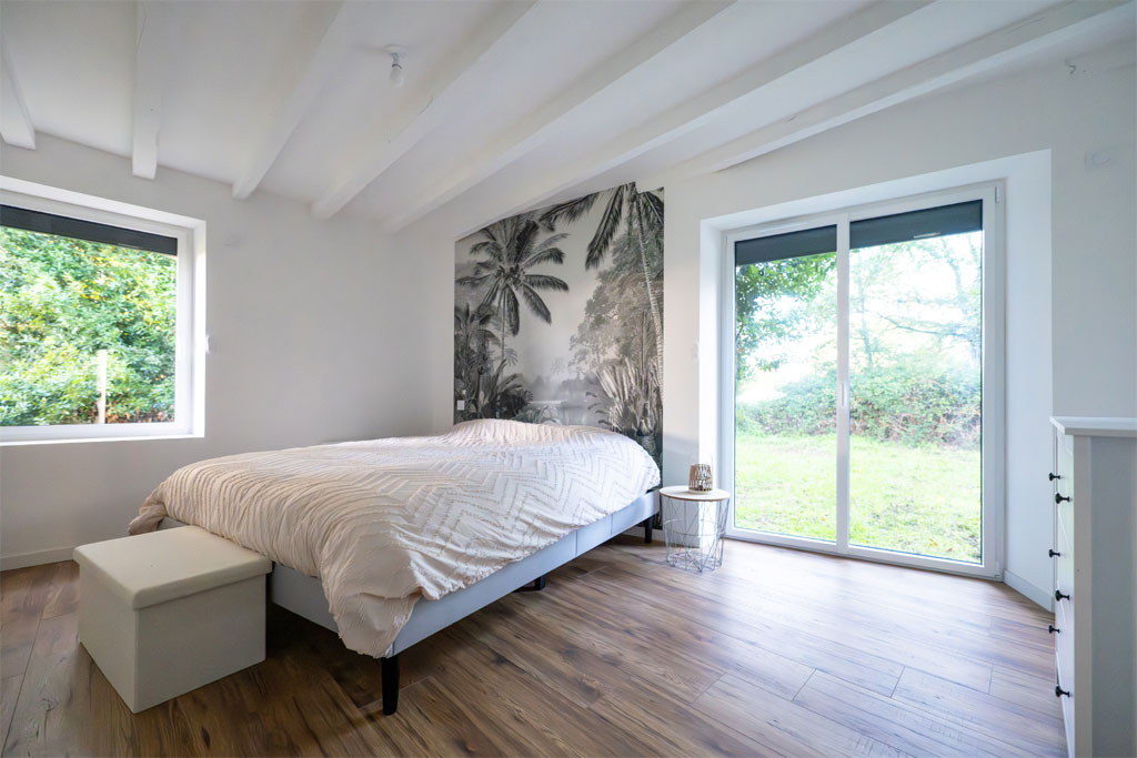 - 6 chambres doubles chacune avec salle d’eau + WC privatifs (lits en 180), auxquelles s'ajoute une 7ème chambre (sans salle d'eau avec lit en 160)