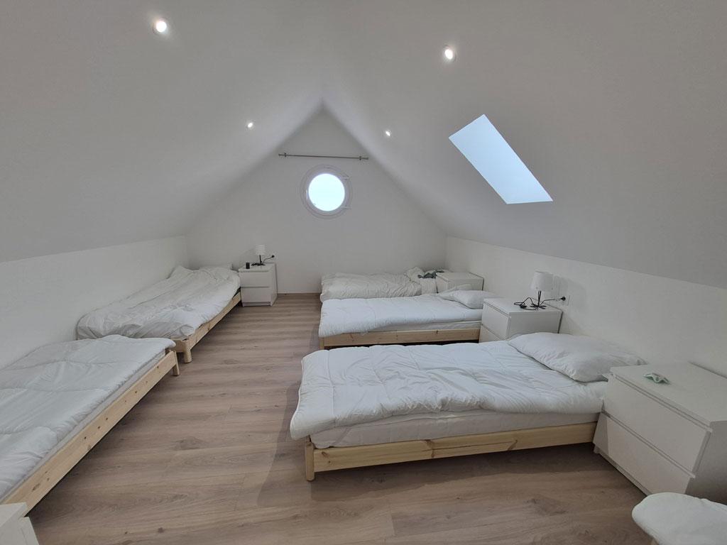 Les chambres sont toutes des chambres doubles sauf une qui forme un dortoir pour les enfants.
