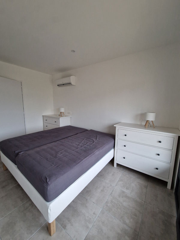 Le gîte propose 3 chambres au rez-de-chaussée dont 2 climatisées, une pièce de vie pour accueillir les 15 convives au premier étage donnant sur un petit balcon vue mer. La pièce de vie est climatisée. Et deux chambres au 2ème étage dont une climatisée.