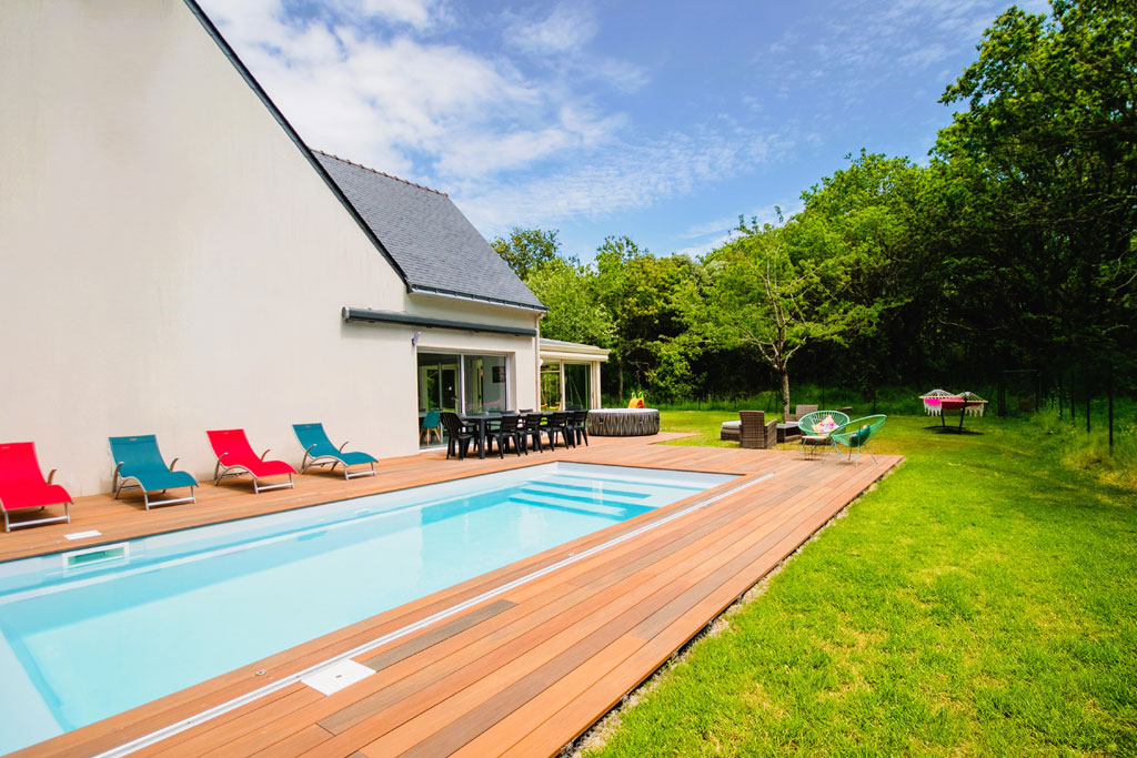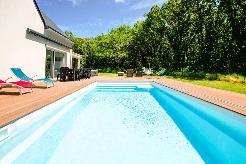 Gite pour se retrouver en famille ou entre amis au bord de la mer à La Turballe. Terrasse avec piscine privée et chauffée (d'avril à octobre) + SPA 4-6 personnes (toute l'année)