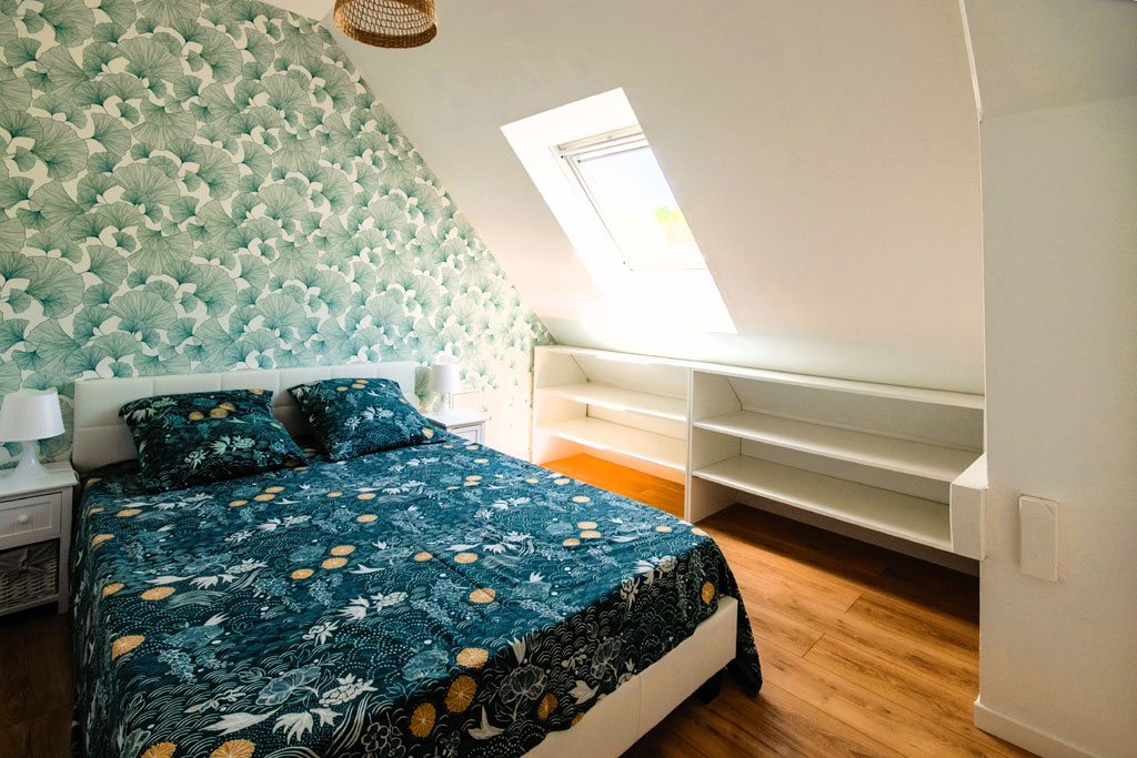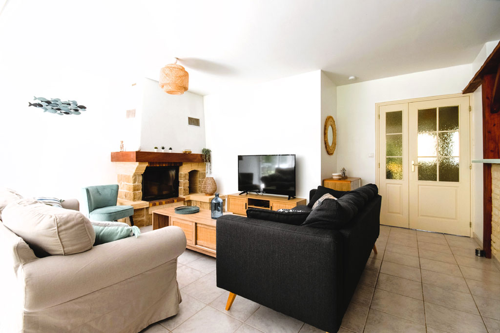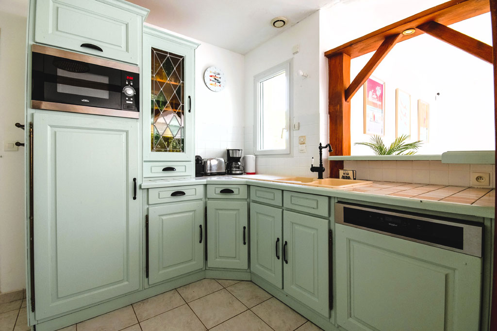 La maison est proche de la plage, du port et ses commerces (700 m, moins de 10 minutes à pied), tout en étant au calme, dans une impasse avec un grand jardin de 1000 m².