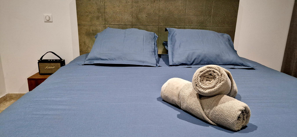 - Chambre 1 RDC : lit double king size + canapé convertible 1 place (adulte ou 2 enfants)