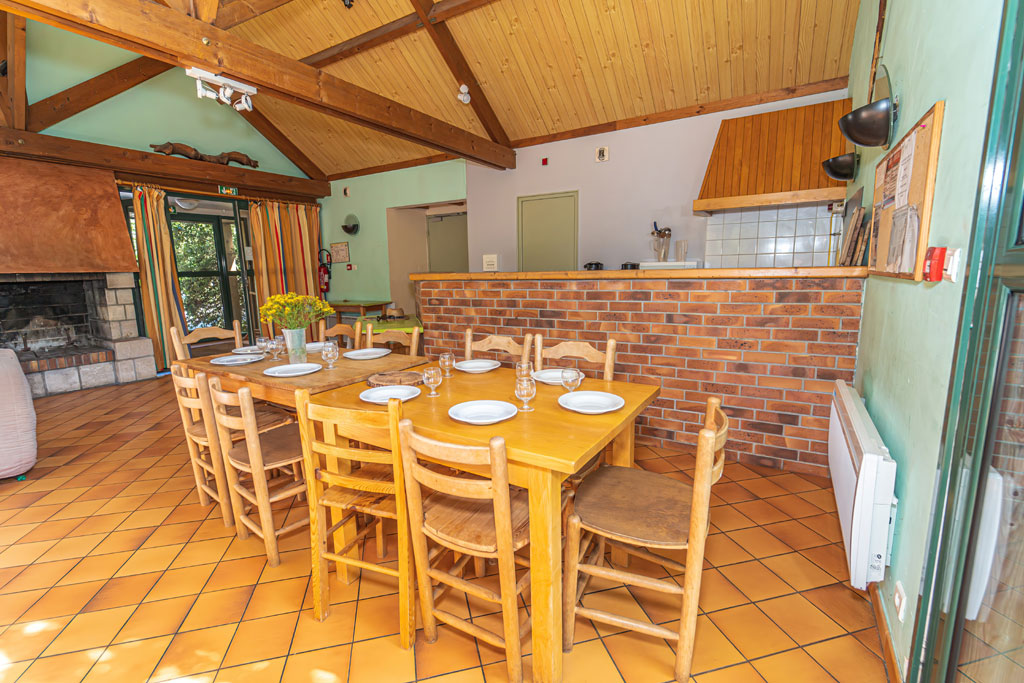 Au rez-de-chaussée, une cuisine entièrement équipée (cuisinière, four électrique, etc.), un séjour avec télévision, de 5 douches, 5 toilettes, une infirmerie, une terrasse de 38 m² et 4 chambres avec 2 lits. A l’étage, une chambre avec 5 lits, une chambre avec 3 lits et une dernière chambre avec 1 lit.