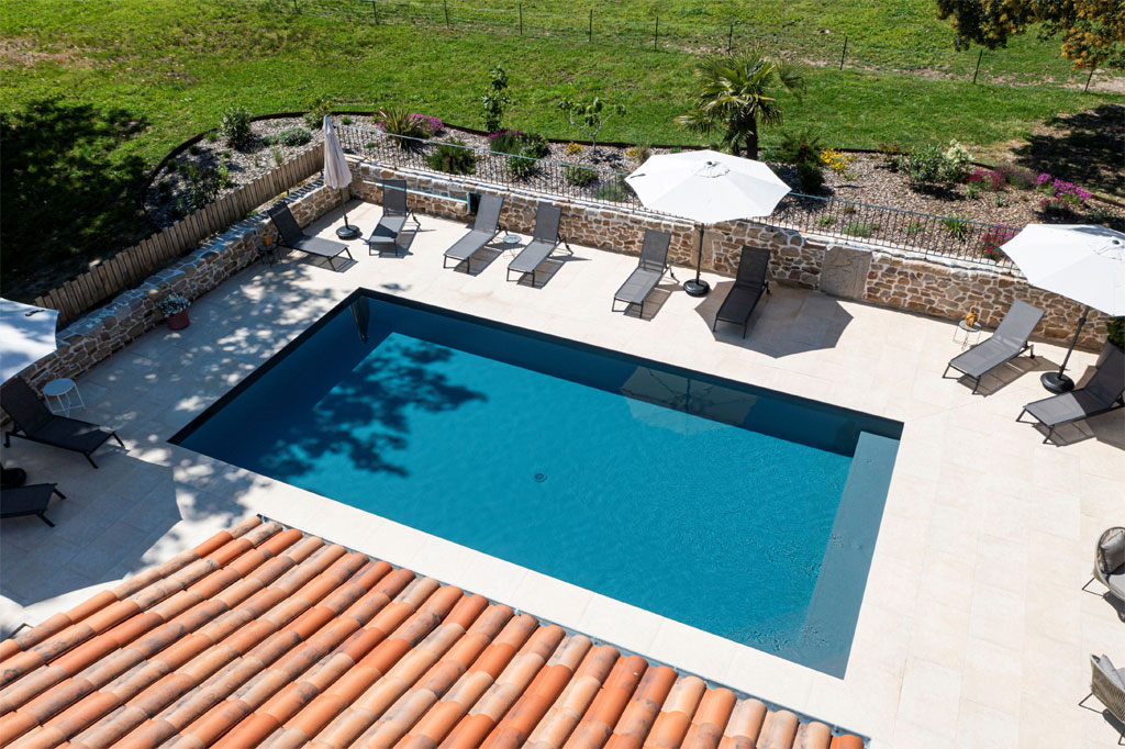 Piscine entièrement sécurisée et chauffée (5 × 10 m) + Douche solaire extérieure + WC dédiés au local piscine