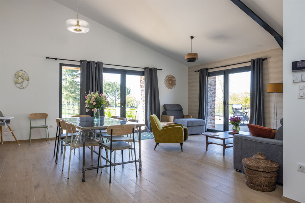 Idéal pour les familles et les groupes jusqu’à 30 personnes, l’hébergement dispose de 13 espaces nuit, dont plusieurs chambres PMR en rez-de-chaussée, 6 salles d’eau et 3 cuisines entièrement équipées. Vous profiterez d’un confort optimal : literie en percale de coton, Wi-Fi gratuit, écrans QLED et espaces de vie conviviaux.