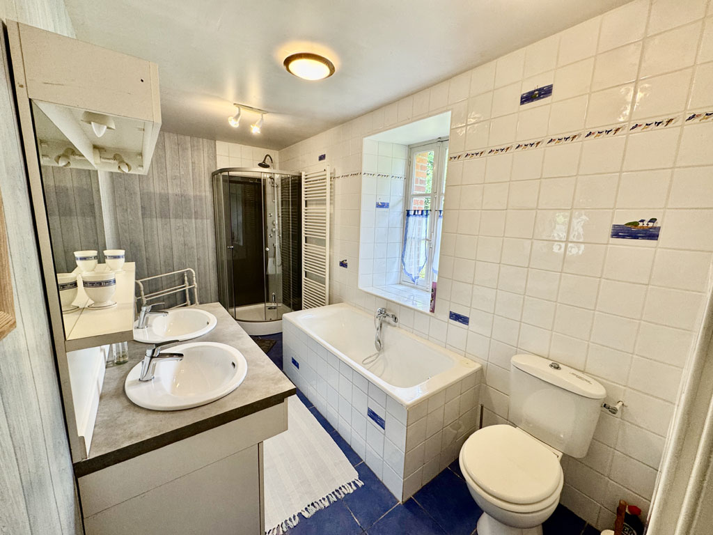 Au niveau des couchages dans la maison au rez-de-chaussée on retrouve une chambre PMR avec un lit double et une salle de bain attenante PMR également avec baignoire et douche.