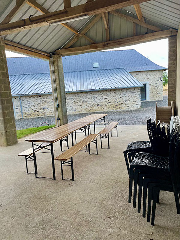 Préau de 60 m² - Terrasse - Barbecue - Salon de jardin - Terrain de pétanque