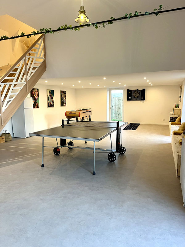 - 1 salle de jeux conviviale de 50m² avec table de ping-pong, baby-foot, fléchettes et jeux divers