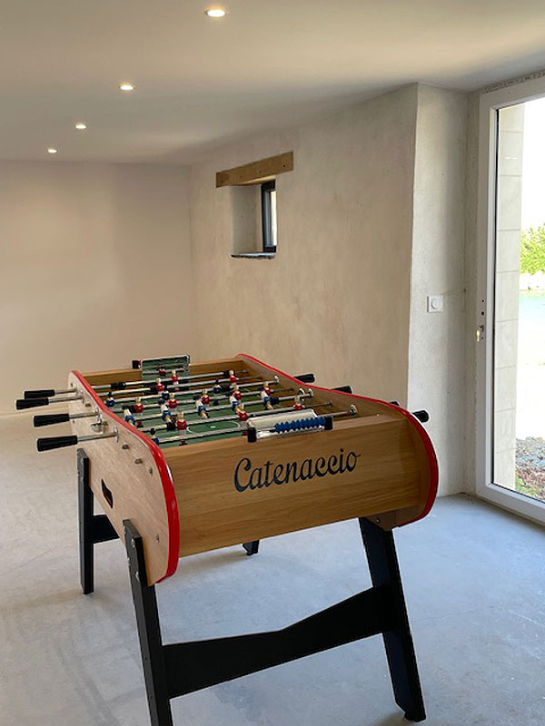 - 1 salle de jeux conviviale de 50m² avec table de ping-pong, baby-foot, fléchettes, console et jeux divers