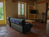 Salon de 40 m² : 2 canapés, 2 fauteuils, pouf, table basse, TV avec lecteur dvd + une Wii.