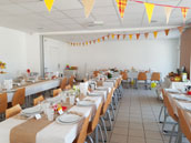 115 lits en collectif répartis dans 55 chambres de 2 à 7 lits toutes équipées de douche et lavabos ; WC communs dans le couloir.