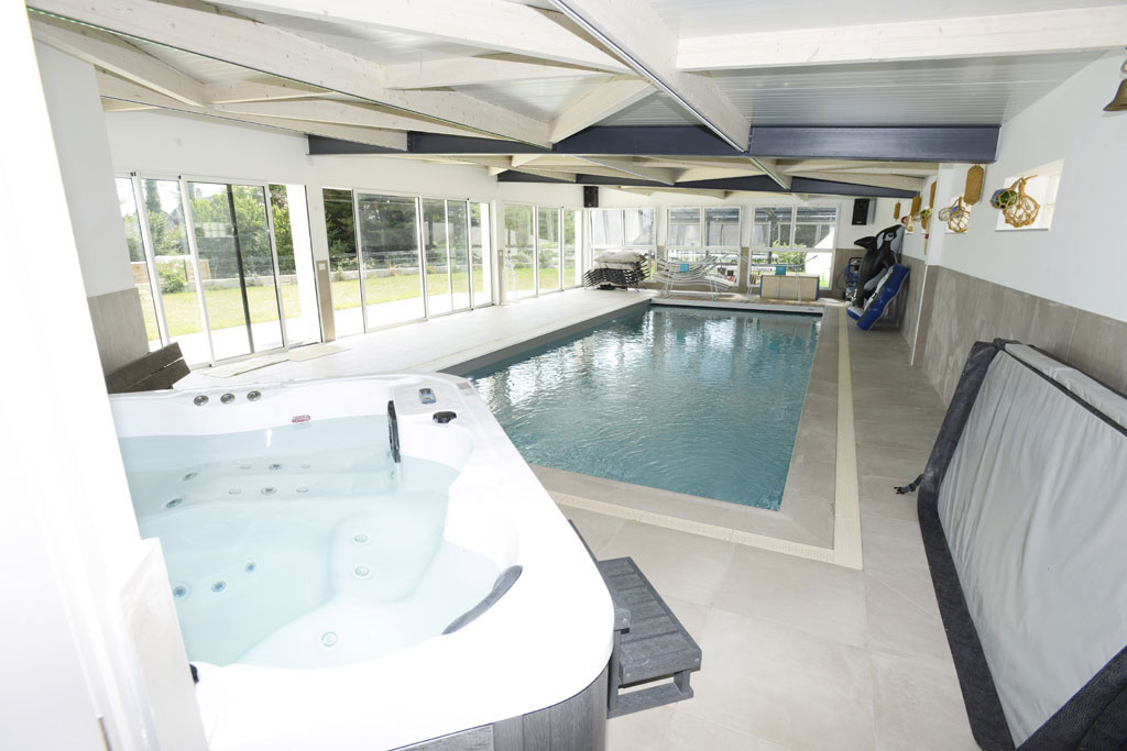 Pour des vacances avec toute la famille ou entre amis, avec conjoints et enfants ; 7 Familles avec enfants peuvent être hébergées conjointement. Propriété au bord de l'océan atlantique dans le Golfe du Morbihan, piscine intérieure et SPA, salle de convivialité, en presqu'île de Rhuys à 500m de la plage, tout confort avec jeux, décoration soignée, grande terrasse de 200m² avec barbecue et plancha gaz, tables d’extérieur et chaises, jardins nord et sud avec jeux d’enfants.