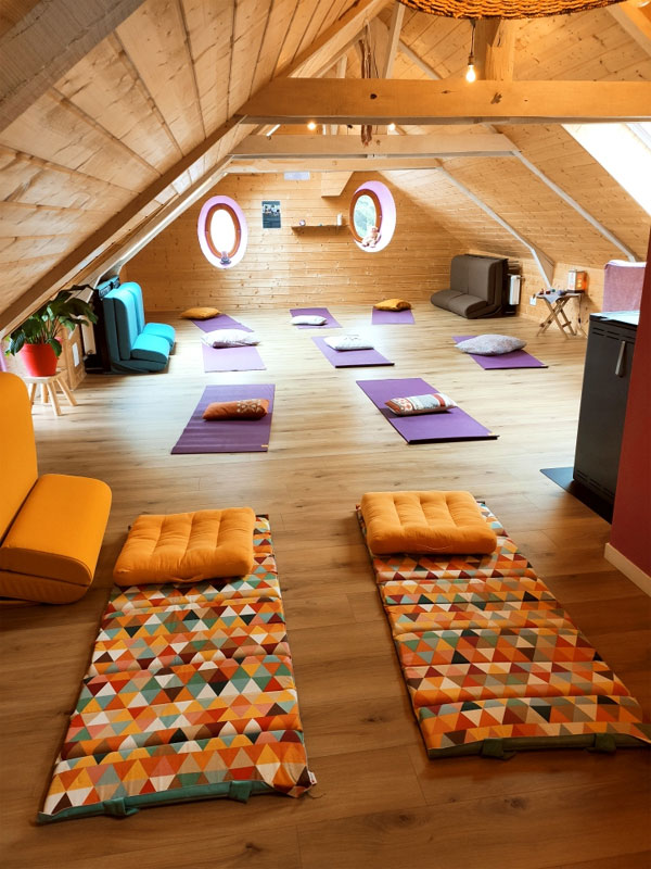Possibilité de louer le lieu pour un stage Yoga, méditation, stage clown, danse ou chant ou formation avec une salle de pratique de 70m² en sous pente pour 8 ou 12 personnes.