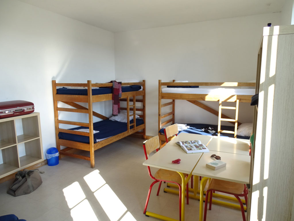 Bâtiment d'hébergement sur trois étages, avec un total de 15 chambres collectives de 2 à 6 couchages individuels, 3 salles d'eau et 6 WC. Plusieurs pièces à vivre dont une cuisine toute équipée avec salle de restauration (56 places assises), ainsi qu'une salle commune avec une grande cheminée, tables, chaises. Possibilité de location de matériel vidéo (écran et vidéoprojecteur).