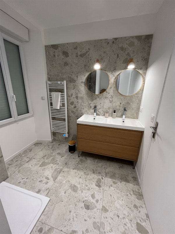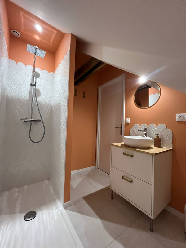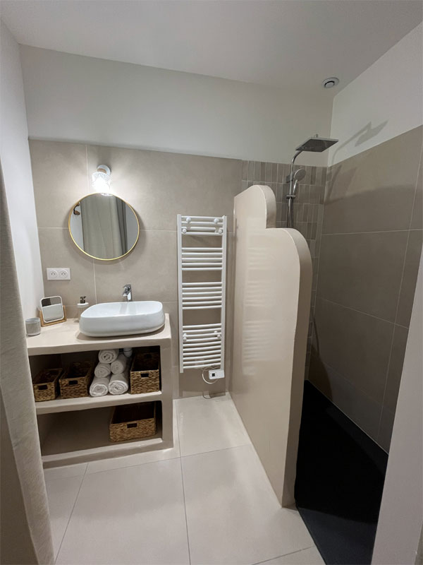 1 chambre composée d'un lit double et sa salle de bain privative (douche et vasque)