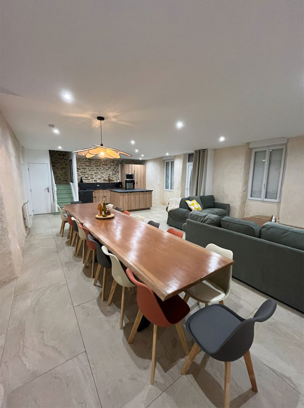 Entièrement rénovée en 2025 pour un confort optimal, la maison allie avec harmonie le charme de l’ancien et une décoration moderne. Elle peut accueillir jusqu’à 15 personnes, ce qui en fait un lieu idéal pour les groupes, tout en préservant l’intimité de chacun grâce à ses espaces bien pensés, dont trois chambres disposant de leur propre salle de bain.