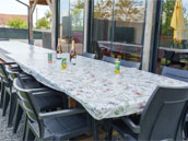 Cuisine 32 m² tout équipée avec grande table et ses 14 chaises (2 chaises à manger bébé)