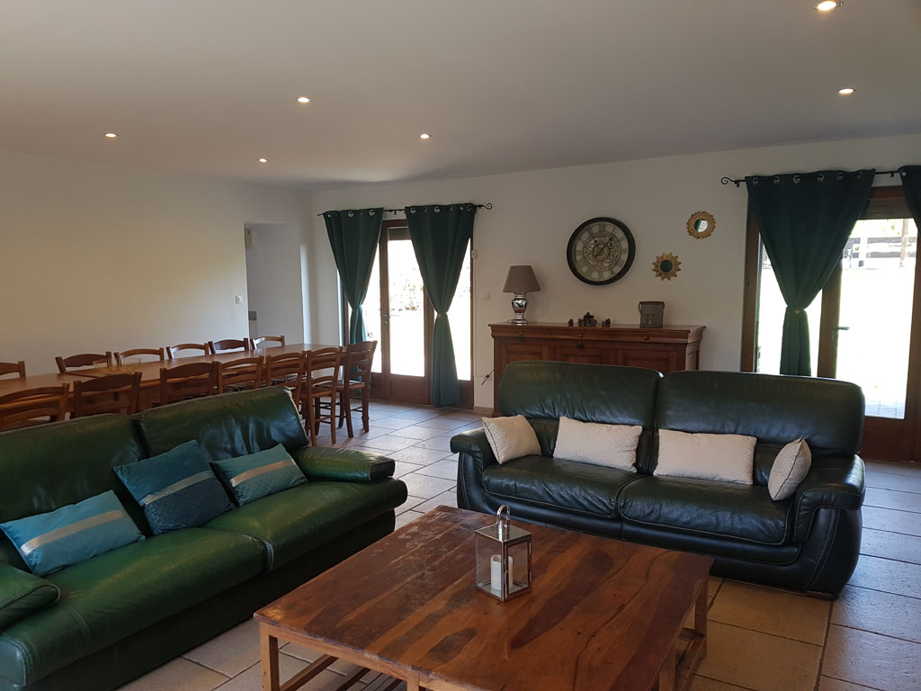 Gîte 17 couchages : 5 chambres (dont 1 PMR), 3 salles de douche (dont 1 PMR), 3 WC. Tablée de 30 personnes. Jardin privatif.