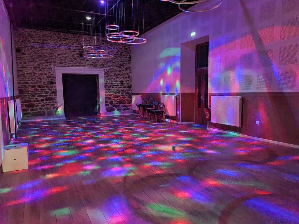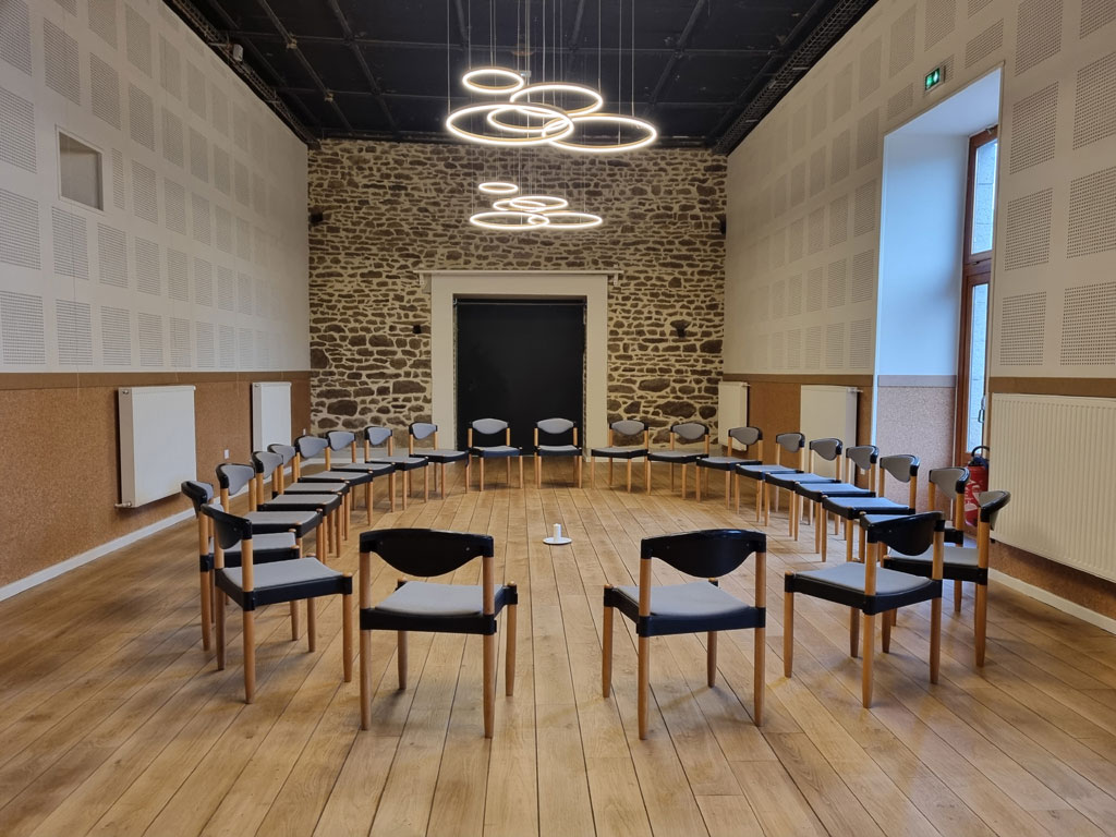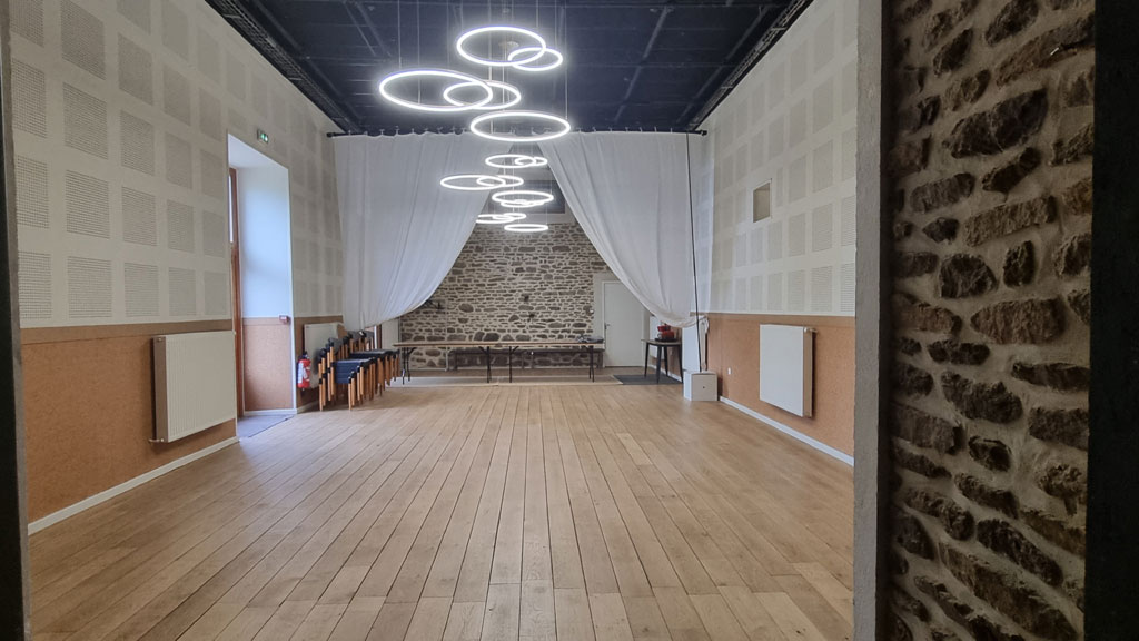 - La Grande Salle de 78m², parquet, pour des activités multiples, salle de réception, de spectacle, de stages ou de séminaires.