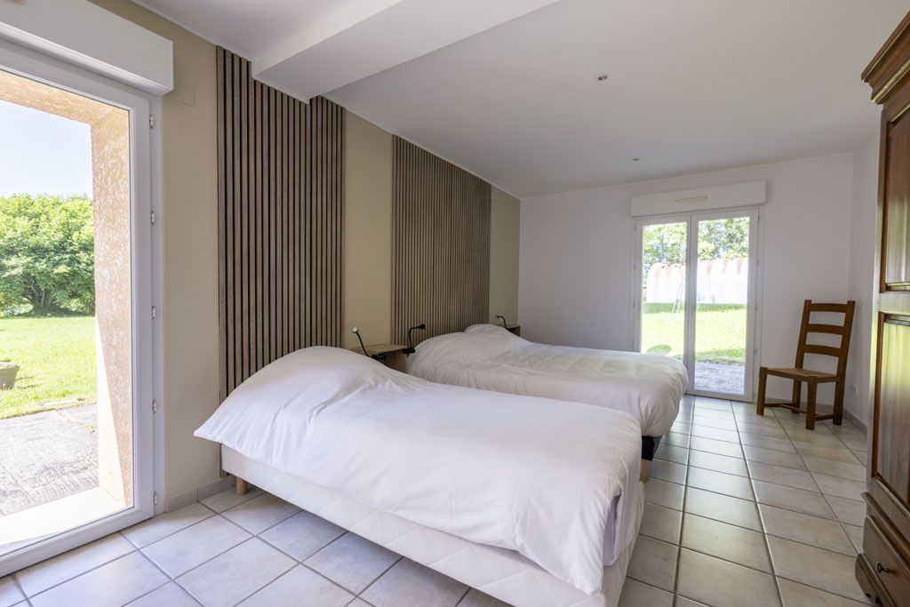 - 2 chambres avec 2 lits simples pouvant être rapprochés pour faire des lits en 160/200