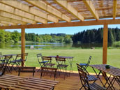 Organisez un évènement unique dans notre jolie salle de réception de 140m² entièrement en bois, en forme d'octogone et avec une vue panoramique sur le lac.